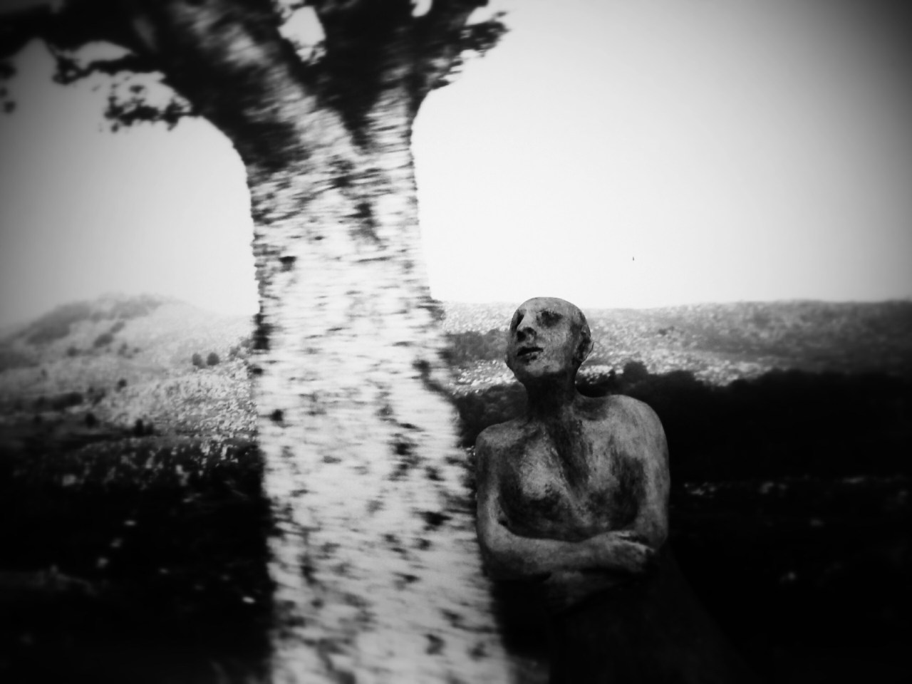 Disparu trop vite, et surtout trop tôt, il ne reste de lui que ses innombrables négatifs qui dorment depuis, dans des cartons. Pendant des années, je n’ai pas osé toucher à ce trésor, trop immense pour que j’y plonge. Un jour, j’ai pensé qu’Alain aurait été heureux de voir vivre mes créatures, mes Géants, déambuler dans ses créations à lui. Ce serait l’union créatrice de nos deux regards à nouveau rassemblés comme à l’époque de nos jours heureux. Alors, devant ses tirages photos, j’ai photographié quelques sculptures comme si celles-ci prenaient vie entre deux mondes.